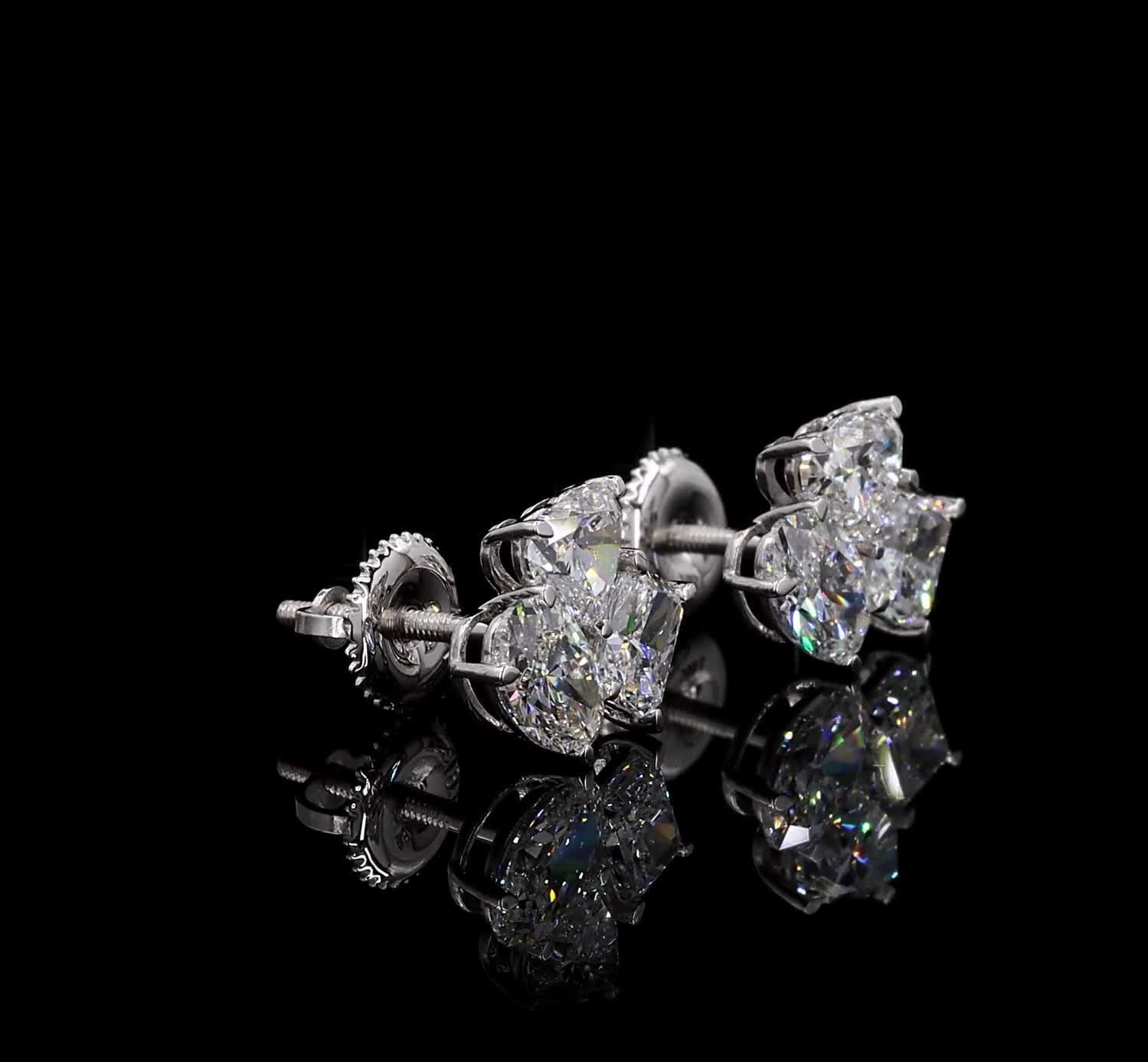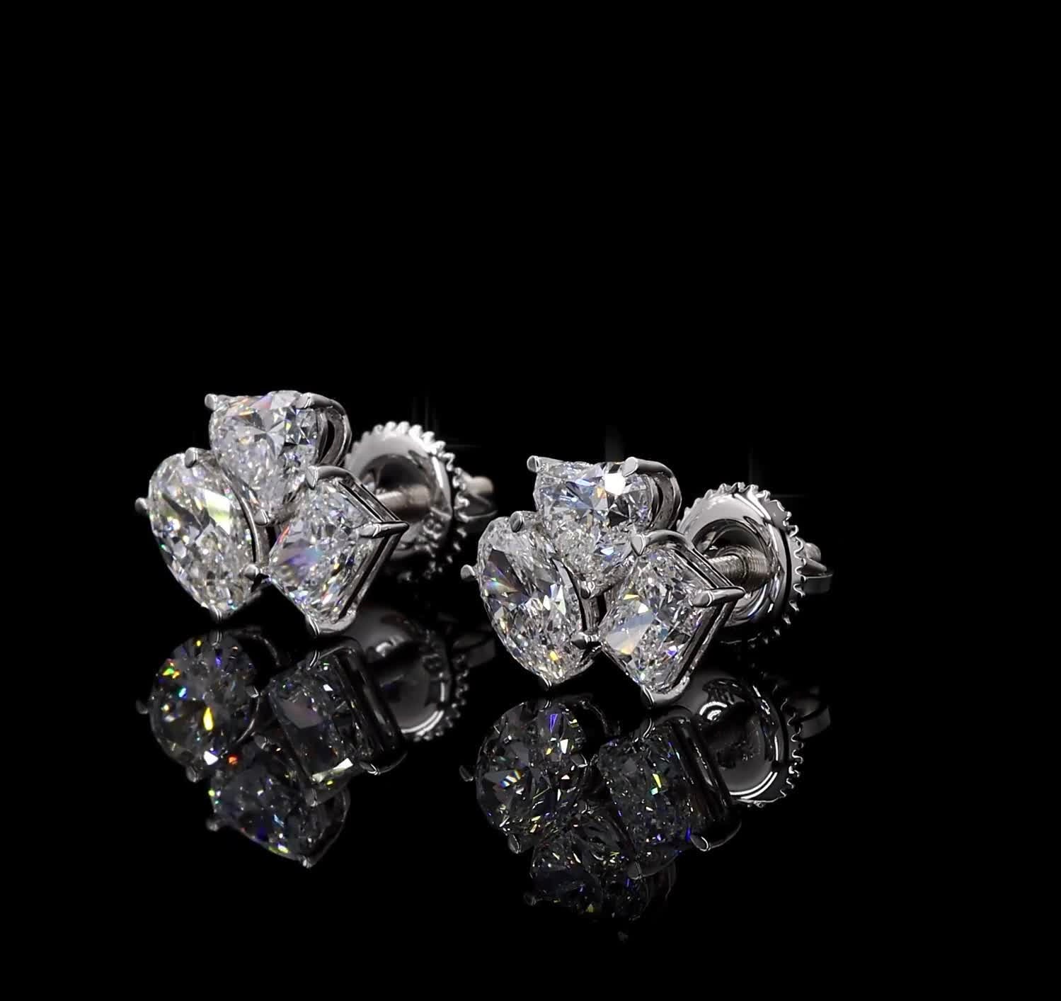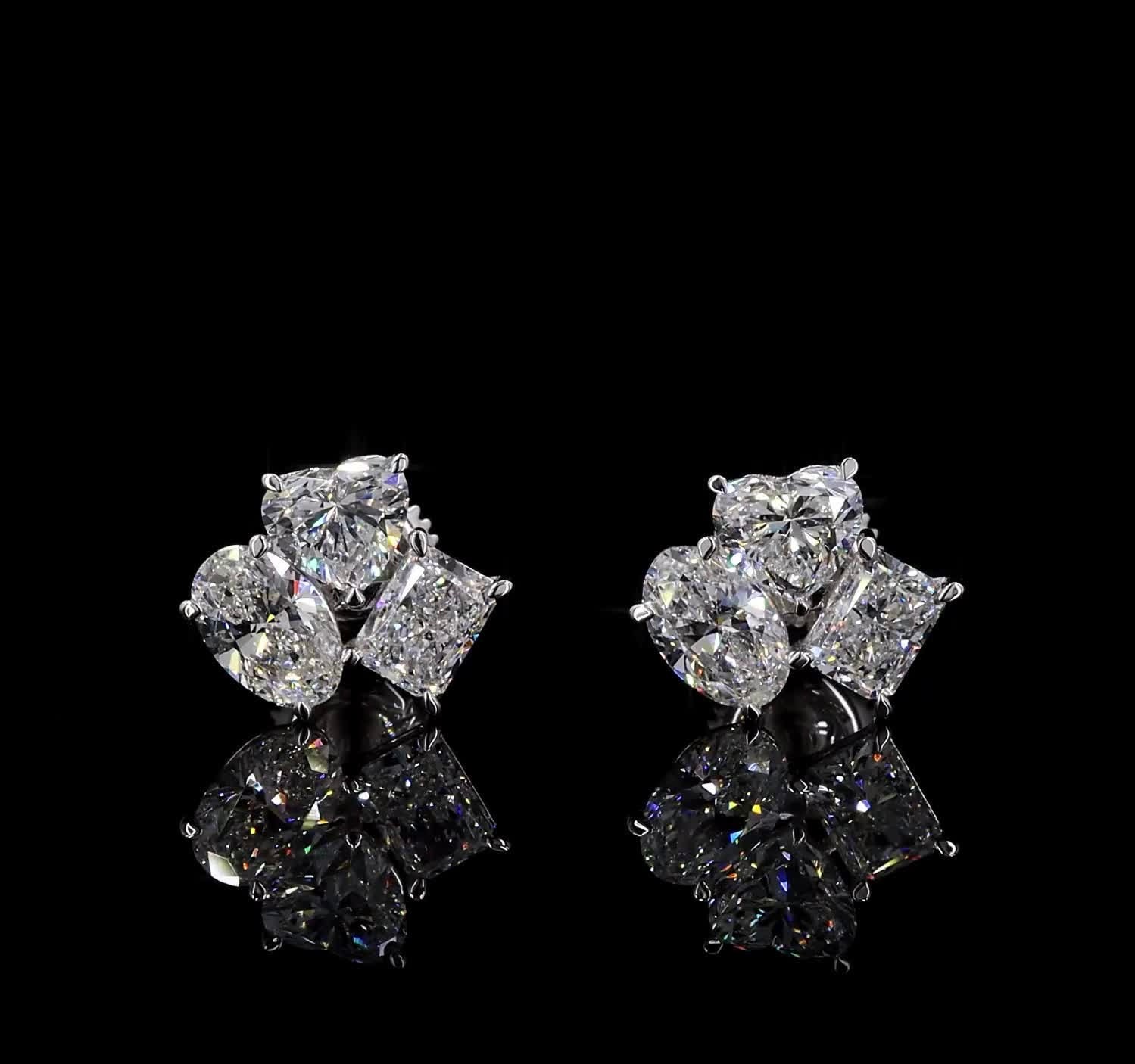 Refined and timeless, these 18k white gold stud earrings feature exquisite diamonds in heart, oval, and radiant shapes, totaling 2.73 carats. Each diamond is hand-set to maximize brilliance and fire, creating an elegant sparkle that captures the essence of modern luxury and ethical craftsmanship.